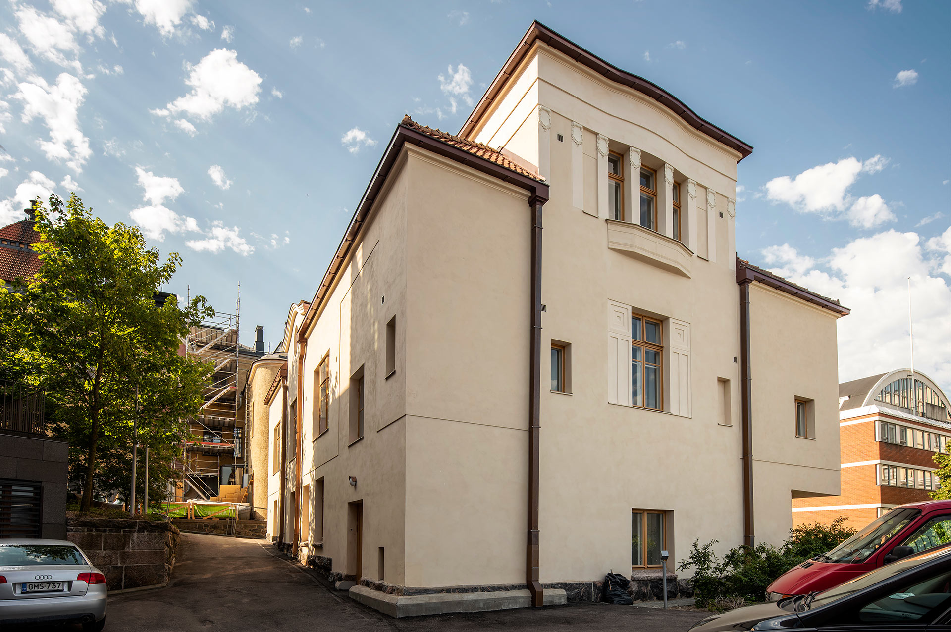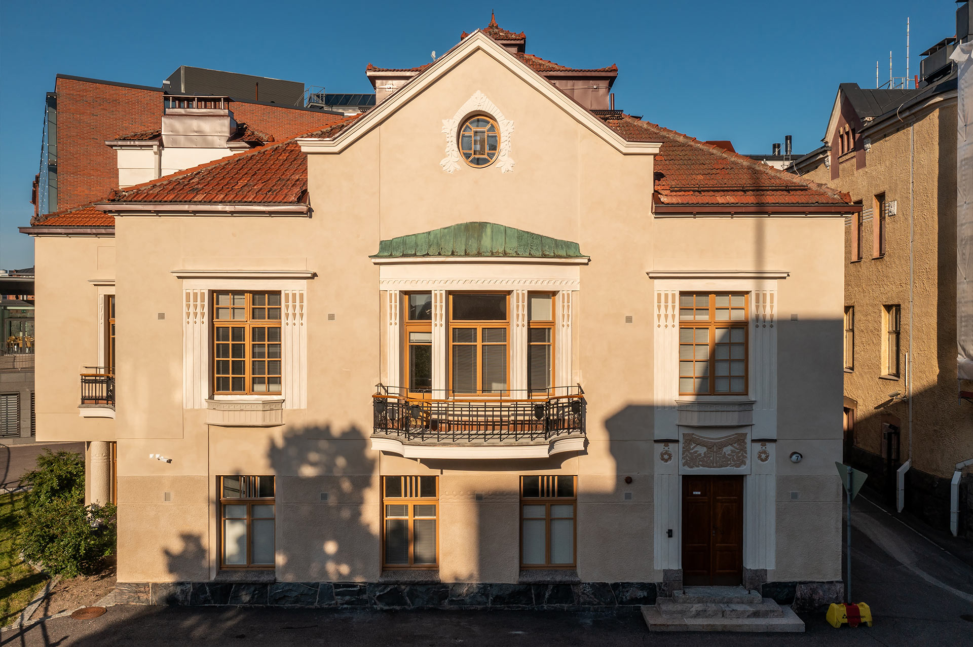 Etelä-Suomen Julkisivupalvelu Oy toteutti arkkitehti Gustav Nyströmin suunnitteleman, osoitteessa Siltavuorenpenger 7, Helsinki sijaitsevan asuintalon julkisivukorjaukset sekä parveke- ja vesikattoremontin. Rakennus on vuonna 1910 valmistunut vanha fysiikan laitoksen esimiehen asuintalo.